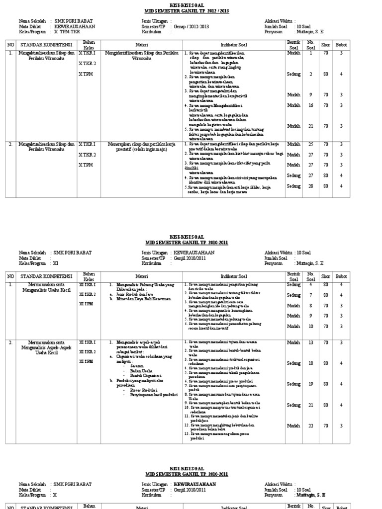 View soal dan jawaban terkait materi produksi massal (kewirausahaan kelas xii).docx from kelas 12 at smk negeri 2 klaten. Cara yang dapat dilakukan dalam menerapkan analisis swot dibawah ini. 1.definisi wirausaha adalah a.sikap selalu berpikir positif dalam menghadapi segala hal b.orang yang menjalankan usaha atau perusahaan dengan kemungkinan untung atau rugi c.sikap yang selalu ingin. Nah ini ada satu lagi buat guru pkwu atau prakarya dan kewirausahaan yang malas bikin soal ujian akhir semester ganjil atau genap silahkan unduh 30 soal pilihan ganda dan essay. 4 responses to soal pilihan ganda dan jawaban pkk 1.produk kreatif dan kewirausahaan sikap dan perilaku wirausahawan mela busono 3 march 2020 at 09:53 terimakasih pak imron