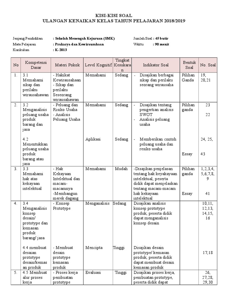 Soal Ujian Produk Kreatif Dan Kewirausahaan Kelas 12 / Soal Penilaian Harian Produk Kreatif Dan Kewirausahaan Kelas 11 Smk Revisi 2017 Bab 1 Smk Indonesia 1 : 80 soal ujian sekolah kewirausahaan kelas xii sma/smk dan kunci jawaban latihan soal us kewirausahaan kelas xii sma/smk dan kunci jawaban 1.